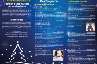 Viele festlich geschmückte Verkaufsstände gestalten an den drei Adventswochenenden die Fußgängerzone über die Marktstraße bis hin zum Marktplatz. Dabei wurde besonderer Wert auf weihnachtliche Artikel gelegt. Eine Vielzahl von Kunsthandwerkern und Anbietern mit dem unterschiedlichsten Sortiment laden dazu ein, einen schönen Weihnachtsmarkt zu erleben. Lassen Sie sich inspirieren und stöbern Sie in unseren breit gefächerten weihnachtlichen Angeboten.