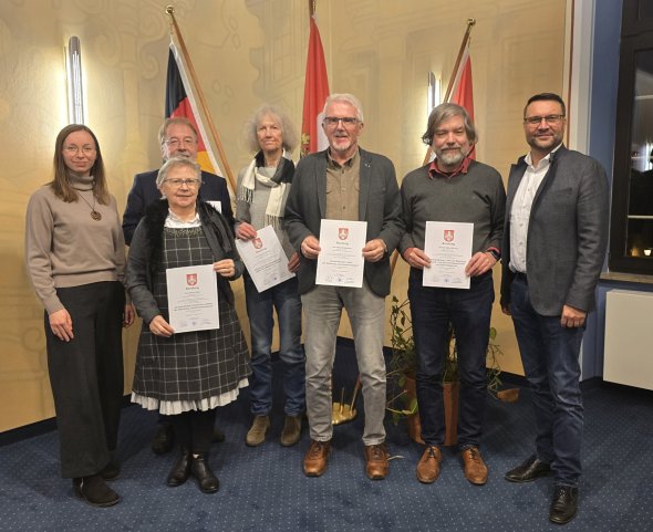 v.l.: Katharina Zeller, Christa Figur, Michael Dorhs, Julia Drinnenberg, Dieter Rüddenklau, Micha Röhring, Bürgermeister Torben Busse (Nicht auf dem Bild ist Jürgen Lips)